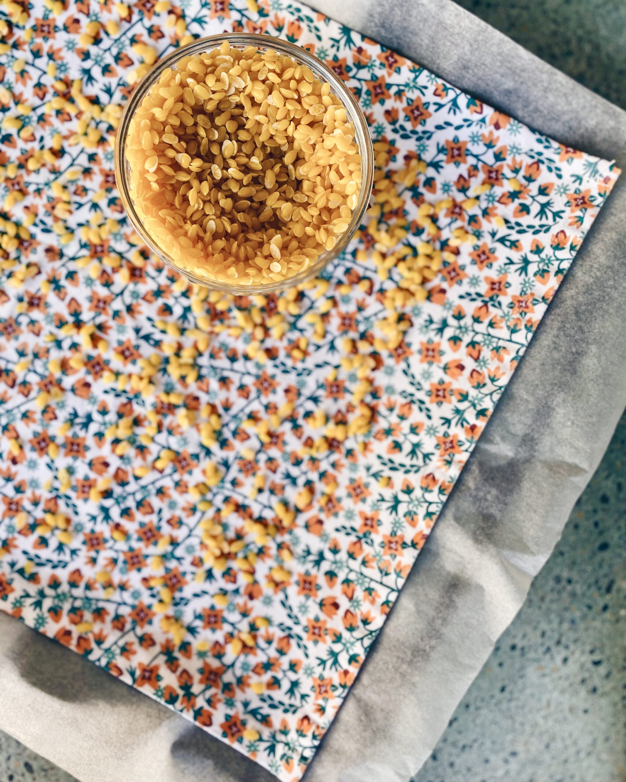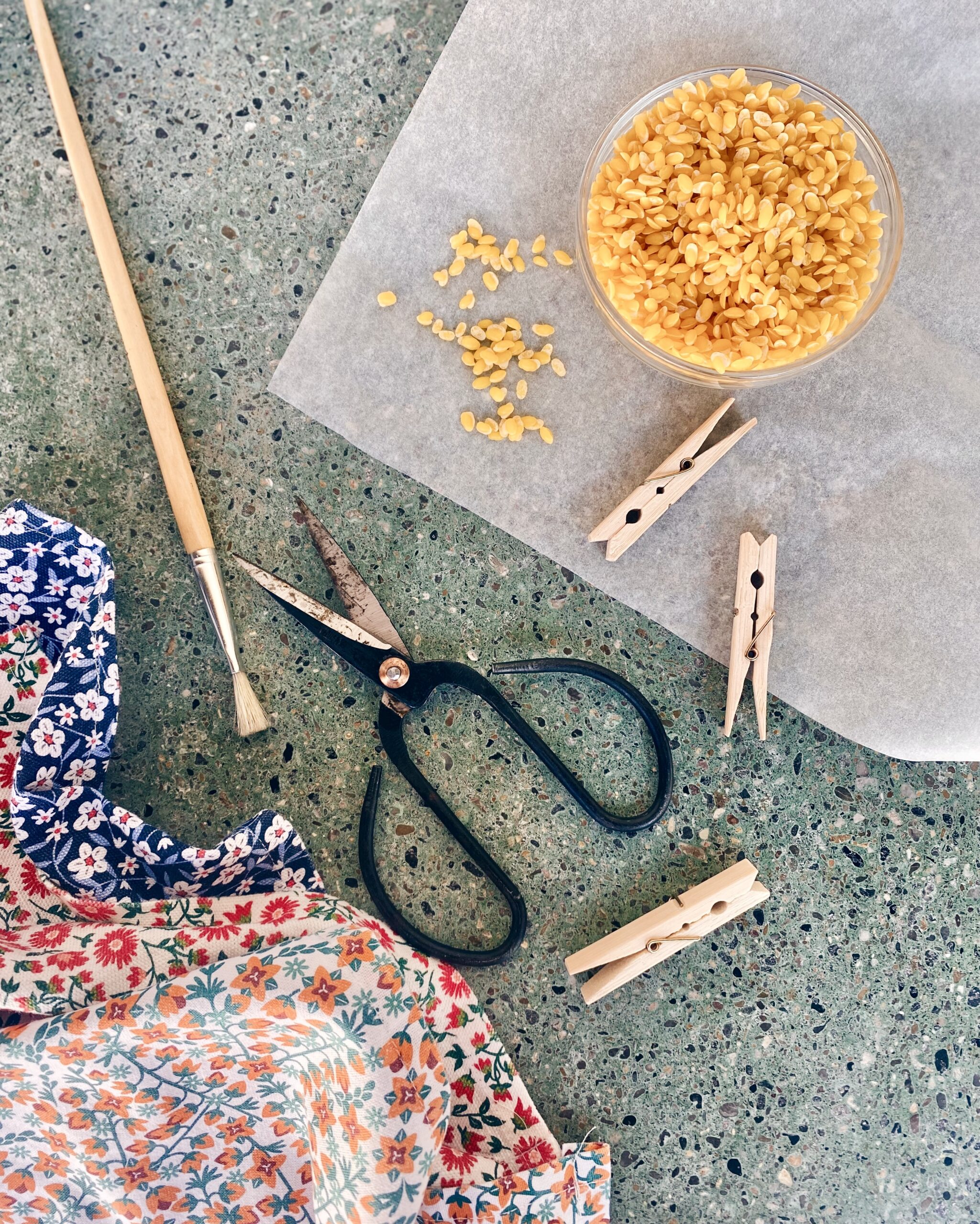 - Má bhfuil blocaí céir á úsáid agat gearr suas ina phíosaí beaga é