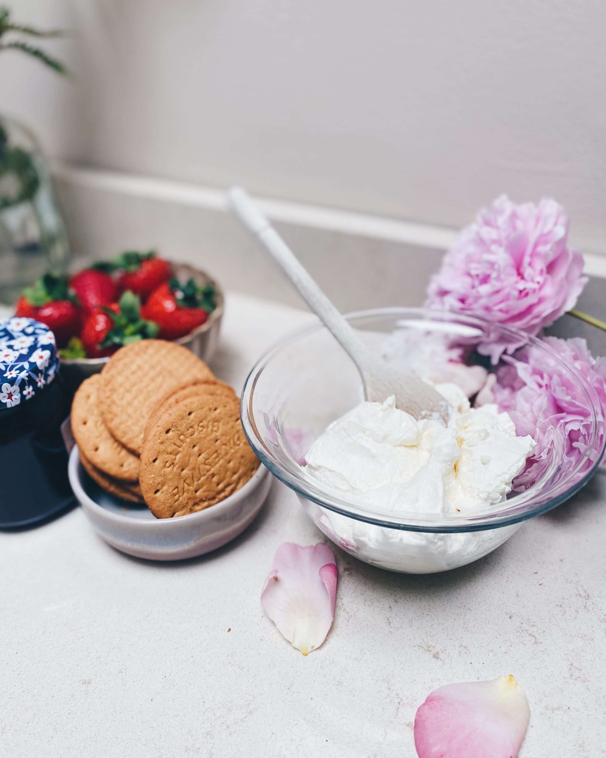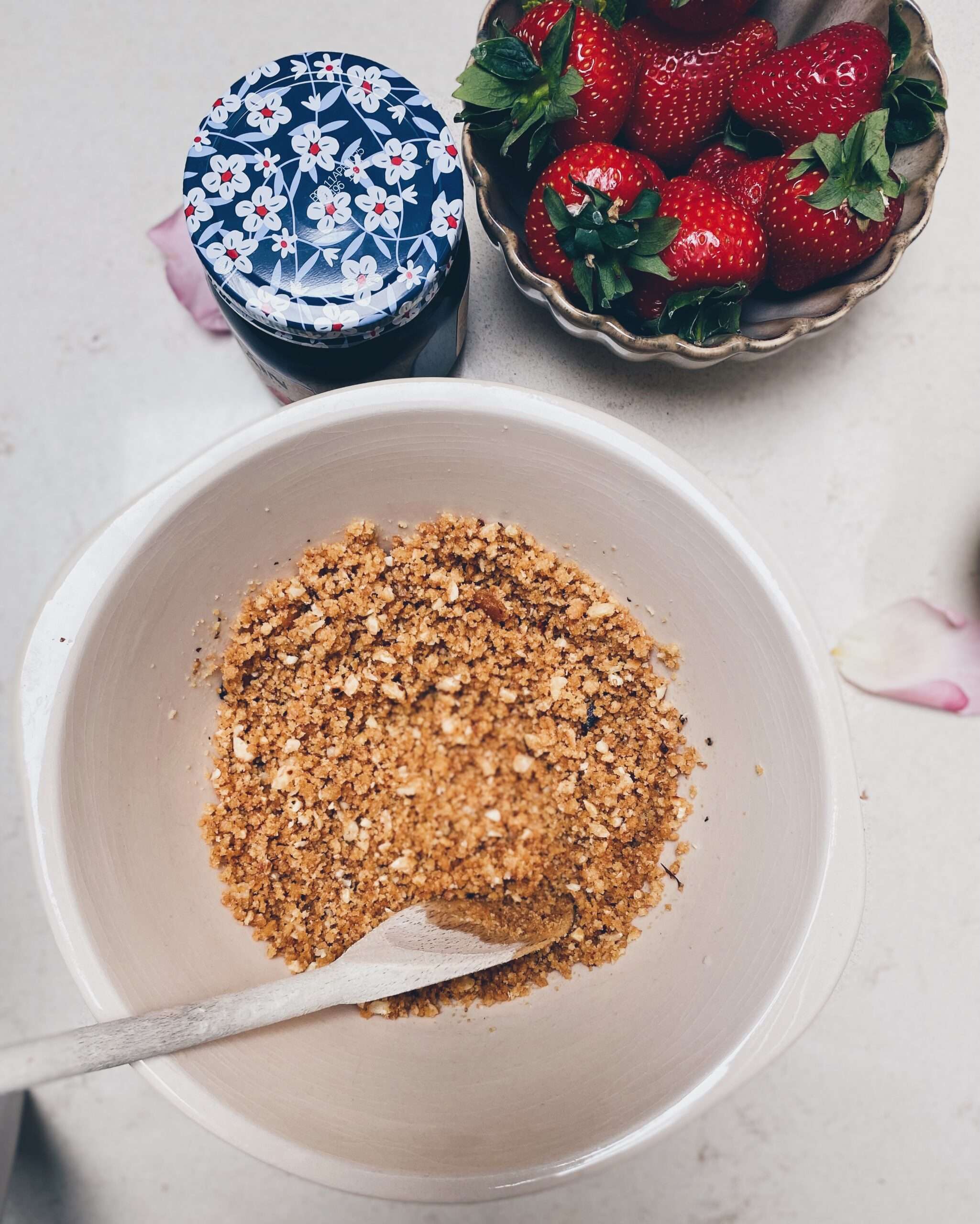 - Cuir na brioscaí brúite i babhla agus measc leis an im leáite