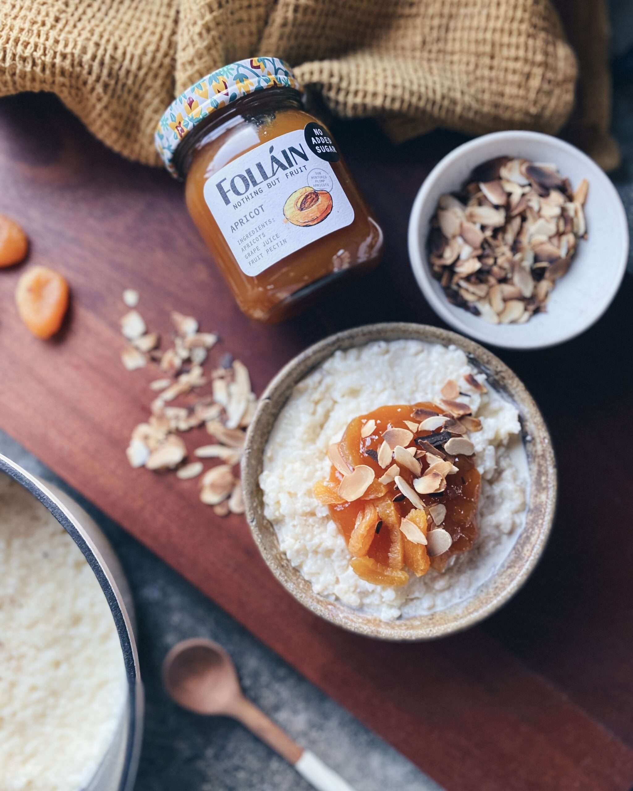 - Fad is tá an rís ag cócráil, measc an aibreog, siúcra agus uachtar le chéile