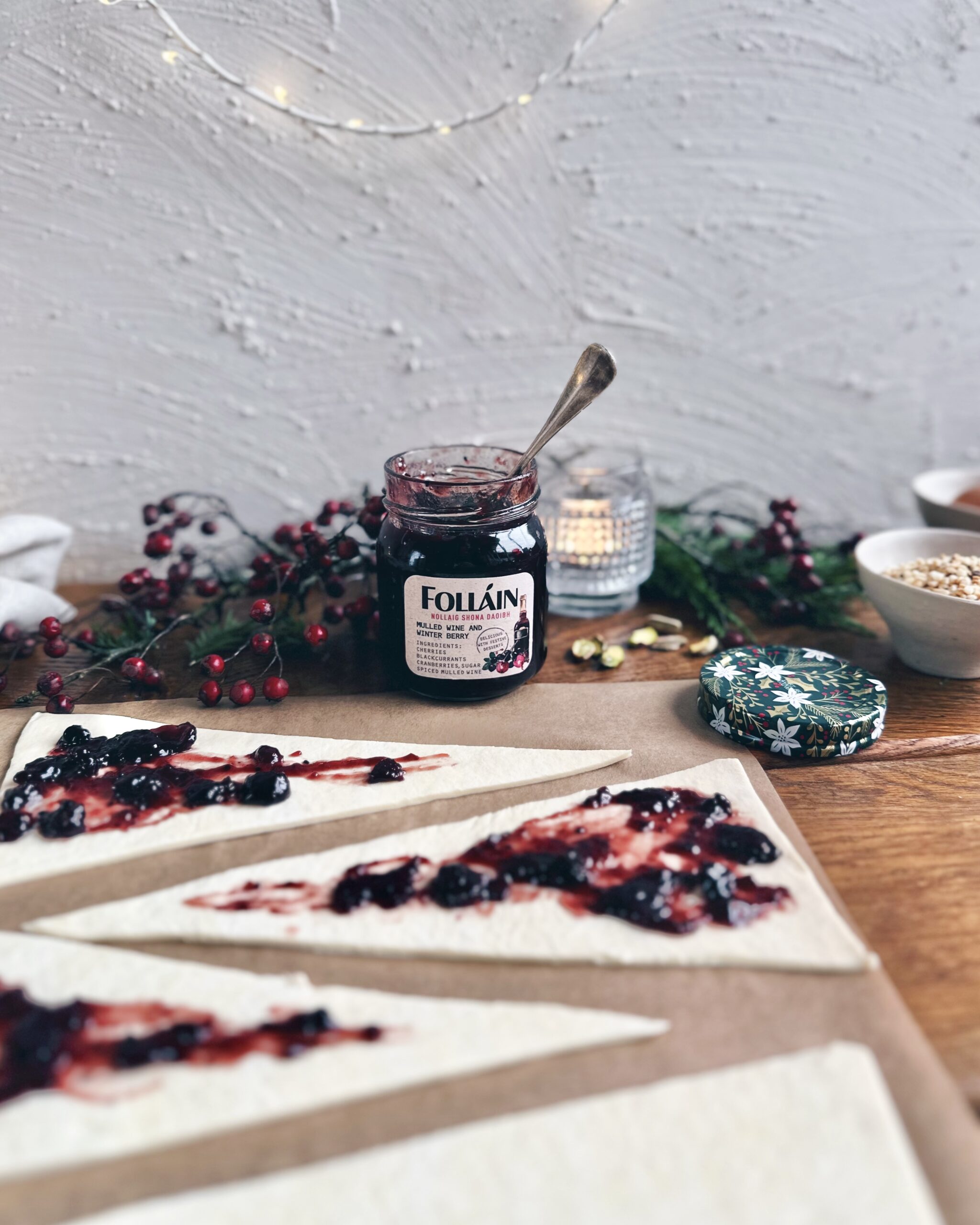 - Add your preferred festive filling (we suggest Mulled Wine & Winter Berry!) . Roll from base to tip to form a croissant shape.