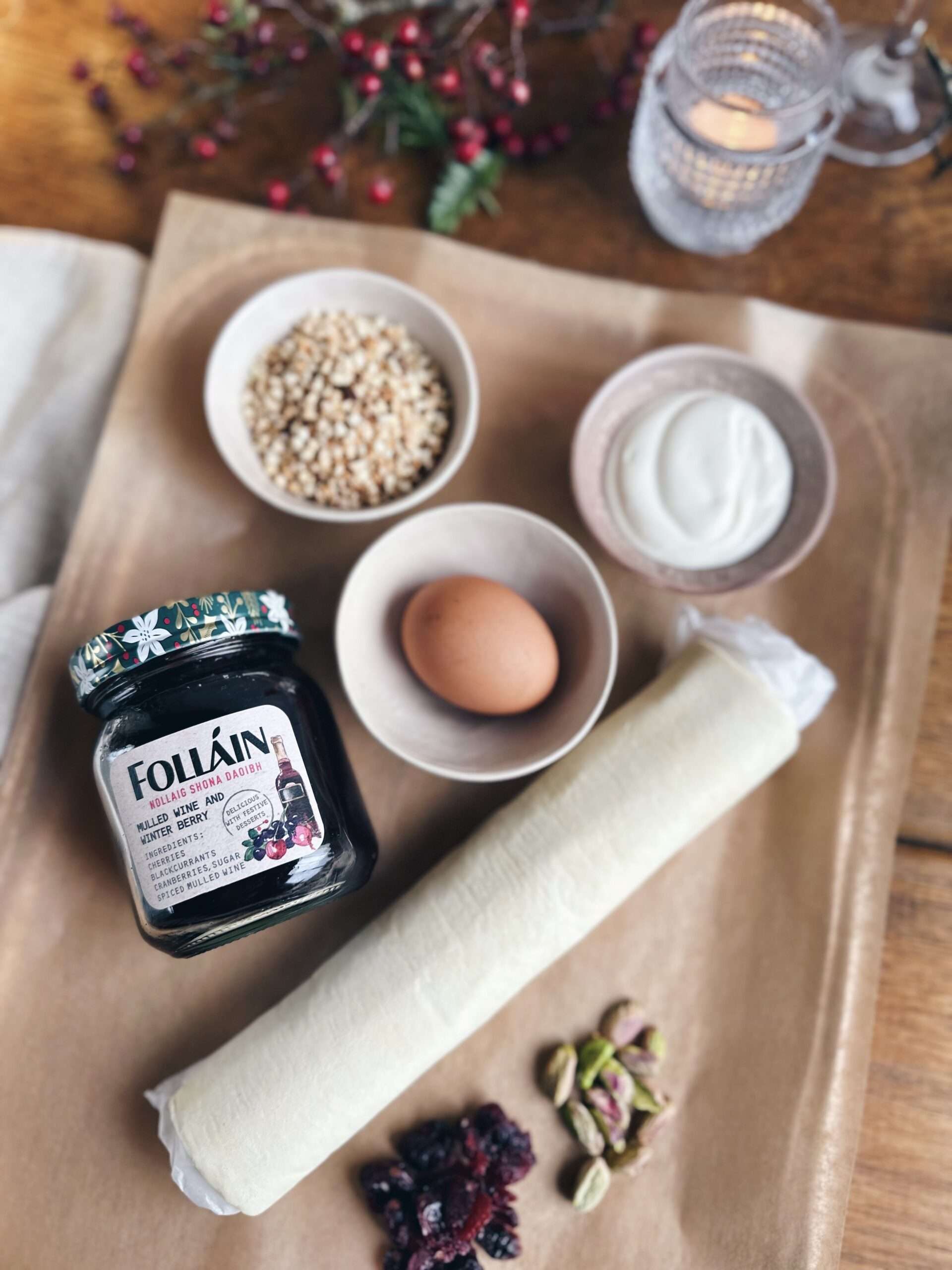 - 3–4 tbsp Folláin Festive Spiced Marmalade (for glazing)