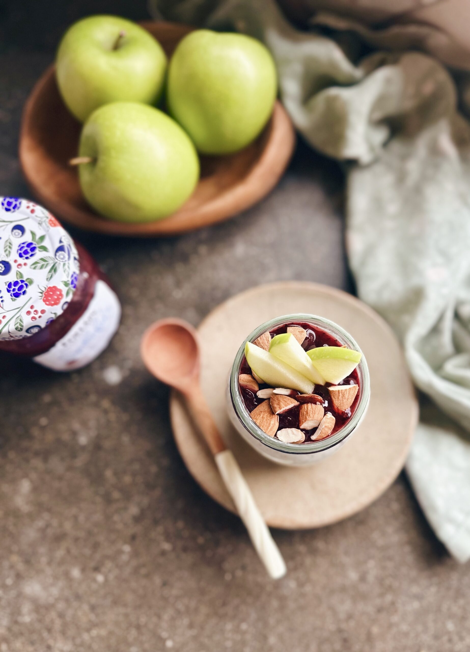 4. In the morning, top with more Spoonfuls, crushed almonds, and fresh apple slices.