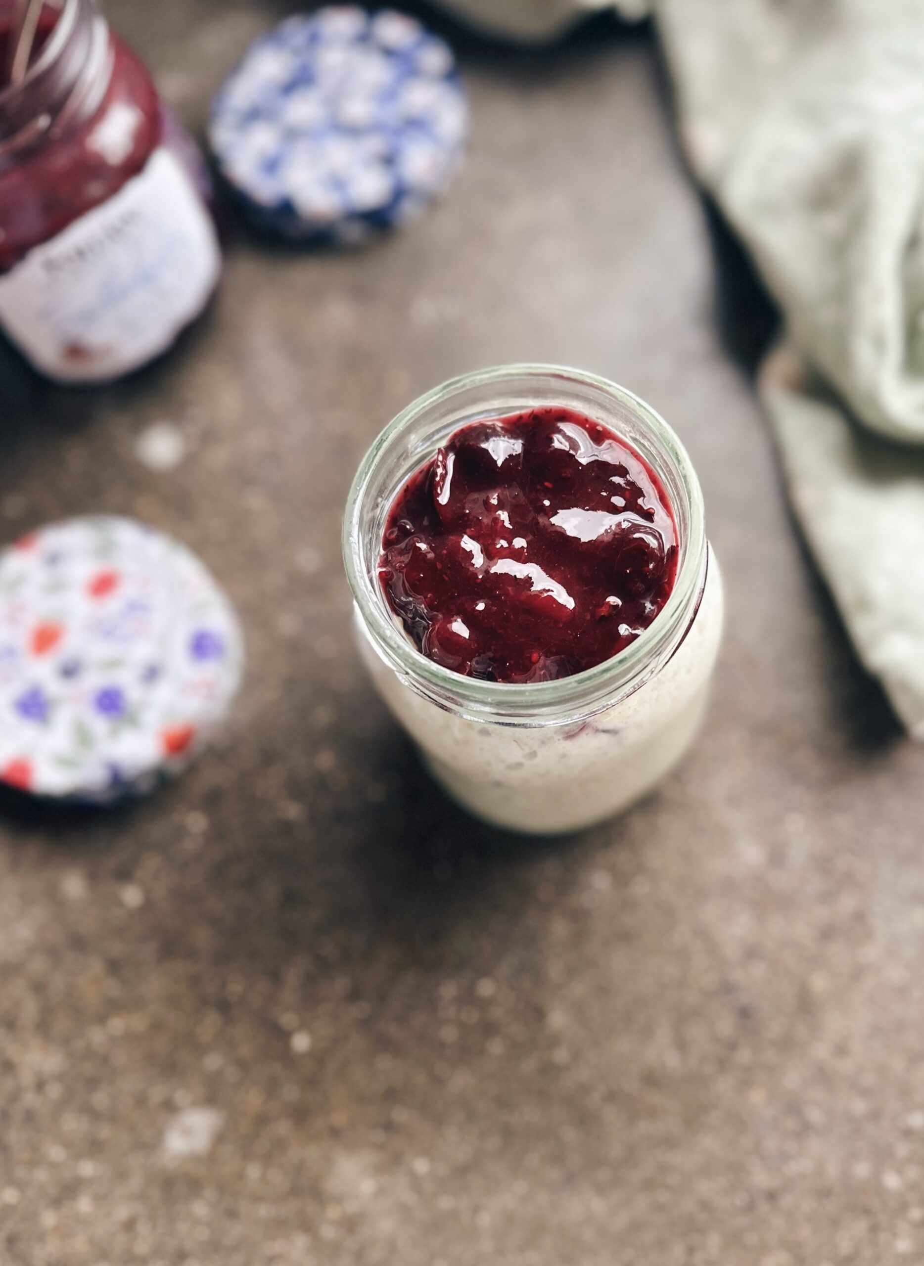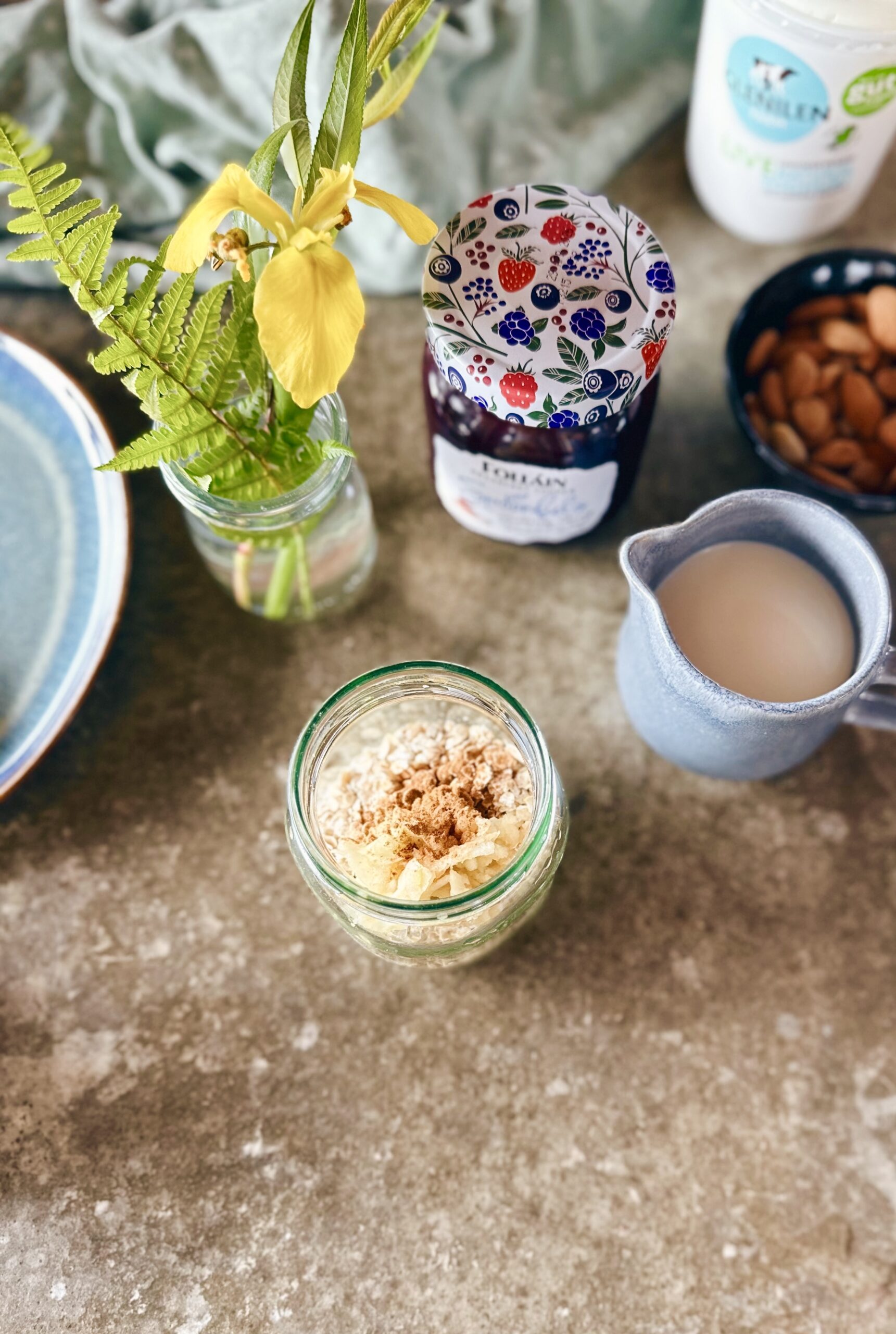 1. Combine oats, milk, yoghurt, grated apple, and cinnamon in a jar.